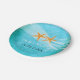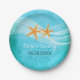 Starfish pair and veil turquoise tropical destination beach wedding paper plate featuring a couple of orange starfish on a white waved veil on turquoise blue and teal grunge stained background. This modern aqua wedding design is part of a wedding set or wedding collection and is a fully customisable template perfect for a destination beach summer wedding, reception, bridal shower, engagement or anniversary party.