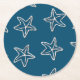 Starfish Pattern On Ocean Blue Colour Round Paper Coaster