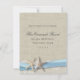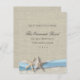Rustic beach wedding invitation with the romantic look of burlap and lace, accented with starfish and ribbon design.