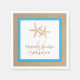 This simple beach wedding paper napkin features a burlap look background bordered in your wedding colour. The focal point of the napkin is a pair of elegant starfish seashells. Custom colours available upon request.