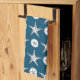 Starfish Sand Dollar Sketch Pattern On Ocean Blue Tea Towel
