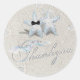 Starfish sand dollar art with silver embossed look, gem stones"Thank You" typography.