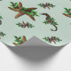 Quality Christmas wrapping paper with starfish and sea horses design. Green holly with red berries decorate brown sea stars and little sea horses. Background colour is muted sage green, or choose another colour.