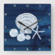 Starfish Sea Shells Beach Sand Dollar Blue n White Square Wall Clock