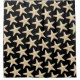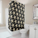 This shower curtain is shown in a black background colour with a beach themed starfish in an all over pattern.