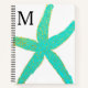 Starfish Teal Blue Gold Foil Monogrammed Initials Notebook
