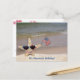 Starfish wearing flag sunglasses and bikini holding an American flag in beach sand for 4th of July party