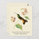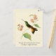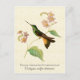 Post card with a vintage natural history illustration by Antoine-Germain Bevalet, c.) A green hummingbird with a purple throat patch and gold tail feathers perches on a tropical wigandia plant with pink flowers, on a light golden yellow parchment texture background. Digitally cleaned and enhanced while still retaining its vintage characteristics. Features common and scientific names in decorative fonts. Matching U.S. postage stamps available.