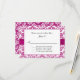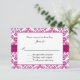 Elegant floral wedding invitation, with a violet pink on white lily floral damask pattern, graphics of a violet pink satin ribbon runs under a pink framed white text area. Custom black text ready to personalise for your special day. Matching products are available.
