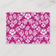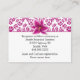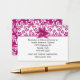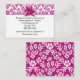 Pretty wedding information enclosure card, with a violet pink on white floral damask pattern, across the top and covering the back, and a lovely stargazer lily bloom, on the top front. The white text area, has black text ready to personalise for your special day. Matching products are available.