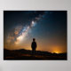 This mesmerising image features a child standing on a hill, looking up at the breathtaking Milky Way galaxy. The night sky is adorned with countless stars, and the Milky Way's vivid colours and intricate patterns are showcased in stunning detail. The silhouette of the child adds a touch of curiosity and adventure, making this image a perfect addition to any space-themed collection.