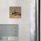Painting of an African blesbok herd in a field, staring blankly at the viewer with their expressionless white faces on a square refrigerator magnet.