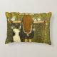 The cushion is small to medium sized. It can be washed. It is well constructed. The material used is pleasant and feels decent quality. It has a very slight plush feel which is good. It is well labelled and its care clearly stated. Theres nothing not to like about it. All in all a good item. The deduction of one star overall is due to long delays in delivery to the UK. It's not clear if this was due to Zazzle or somewhere else in the chain as I did not receive status updates of dispatch or progress. I cannot comment anymore on that other than to say that was our experience but it may not be the same for you. The printing was surprisingly close to what we were expecting. Its an art piece and on material so its hard to assess the precision of printing but it seems close to the original. The soft lines are reproductions of the original. The colour is a fair reflection of the painting. This was printed in the US and it looks like US quality. No issues.