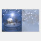Inside a snow globe is a winter landscape with a cottage overshadowed by bare maple and cherry trees. In the windows of the little house candles burn, and on the lawn a Christmas tree sparkles with red and gold. It's an evening at Christmastime, and the lights of a thousand tiny stars fill the globe, with one great Christmas star filling the night with its rays, while the warm beams from inside the cottage light up the surrounding landscape.