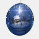 Inside a snow globe is a winter landscape with a cottage overshadowed by bare maple and cherry trees. In the windows of the little house candles burn, and on the lawn a Christmas tree sparkles with red and gold. It's an evening at Christmastime, and the lights of a thousand tiny stars fill the globe, with one great Christmas star filling the night with its rays, while the warm beams from inside the cottage light up the surrounding landscape.