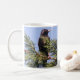 This coffee mug features a photograph of a starling sitting in a spruce tree. The bird has a beady eye and its feathers glisten in the late afternoon sunshine. The beautiful blue sky provides a stunning background. There is cstomizable text on the other side of the mug, allowing you to turn this mug into a fantastic personalised gift for a bird watcher or animal lover you know. The design is shown here on a basic white coffee mug, but is also available on lots of other styles and colours of mugs.