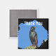 An elegant starling showing off his iridescent black feathers stands atop a cactus on this appreciation magnet. The rainbow of colours displayed in the bright sunlight show off the beauty of this bird. This nature photo appears against a black background and is accompanied by "Thank You". Both the text and the background colour may be customised if you desire.