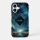 breathtaking cosmic scene featuring deep blue swirling clouds, glowing constellations, and a luminous cityscape below.