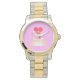 At Starlit Hearts Fashion, our oversized two-tone bracelet watch with a fading red heart, a shining sun, and a pink backdrop is an excellent addition to your kitchen and a beautiful present for any celebration or event.