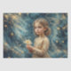 Bring a touch of ethereal beauty to your decoupage projects with Starlit Innocence. This delicate tissue paper features a dreamy scene of a young girl dressed in shimmering gold, holding a soft white flower against a celestial background of deep blue and golden stardust. Perfect for decorating furniture, boxes, trays, and other creative crafts, this design evokes a sense of wonder, magic, and timeless elegance