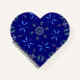 This artwork features a vibrant and symmetrical abstract pattern set against a deep indigo blue background. The design combines floral and geometric elements, with luminous petal-like shapes arranged in radial formations, resembling stylized flowers or starbursts. These petals glow in shades of electric blue with subtle green outlines, creating a dynamic sense of depth and energy. Scattered between the larger motifs are small clusters of iridescent, bubble-like orbs in rainbow hues - red, teal, pink, and green - adding a playful and futuristic touch. At the center of the composition is a kaleidoscopic mandala-like formation made up of these same glowing spheres, anchoring the design and enhancing its hypnotic symmetry.