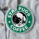 Show your love for pugs with this Starpugs Coffee Round Button it will sure grab some attention and a few double looks then some laughs.