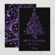 Starry Christmas Tree Black Purple Metallic Look Holiday Card