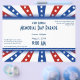 This fun set has a fresh modern feel with a bright white background with red and blue stripes with white stars in a fun ray burst pattern. In the centre there is a white inset with blue thin borders. Memorial Day is a great time to honour and remember our Veterans and fallen heroes and to celebrate our country - and we all do it in different ways. Whether you are planning a party, putting up flyers for a parade, or want to invite the neighbours to a barbeque picnic - you will find everything you need. There are invitations, flyers, postcards, t-shirts, bags and other gifts as well!