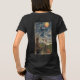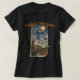 Womens Halloween T-Shirt with a star-studded witch flying across the night sky over fields of pumpkin, with a black cat, an owl, a bat, and a moon that looks like a pumkin. This is a vintage 1913 Halloween design.