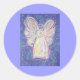 The art shows a soft pastel angel against a soft blue starry night background. The image was initially painted with acrylic and then finished in pastel to create soft luminous colour.