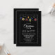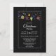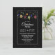 A modern black starry night bordered Christmas party invitation featuring colourful Christmas baubles and stars. Suitable for family or corporate events.