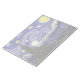 Starry Night by Vincent van Gogh is a vintage fine art post impressionism landscape cityscape painting featuring a view of Saint Remy, France from van Gogh's asylum. The night sky is swirling with clouds with a bright crescent moon and shining stars over the quaint village. Starry Night is probably van Gogh's most famous painting and was painted during the day from memory.