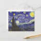 Starry Night by Vincent van Gogh is a vintage fine art post impressionism landscape cityscape painting featuring a view of Saint Remy, France from van Gogh's asylum. The night sky is swirling with clouds with a bright crescent moon and shining stars over the quaint village. Starry Night is probably van Gogh's most famous painting and was painted during the day from memory.