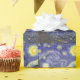 Starry Night by Vincent van Gogh is a vintage fine art post impressionism landscape cityscape painting featuring a view of Saint Remy, France from van Gogh's asylum. The night sky is swirling with clouds with a bright crescent moon and shining stars over the quaint village. Starry Night is probably van Gogh's most famous painting and was painted during the day from memory.