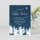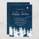 This starry night christmas luncheon invitation card is perfect for a religious holiday event. The design features a winter forest scene with a navy watercolor sky and a brightly shining star of bethlehem.