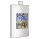 The product is a good size and came exactly as it was pictured. The lid is not attached to the flask, which could be dangerous on drunken nights... The print came out surprisingly well and looks very sharp. Would definitely recommend.