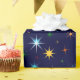 An elegant seamless pattern of colourful stars against the dark navy blue background. The starry night wrapping paper to wrap your gifts. You can transfer this design to a number of other products. Just be creative, make something elegant, and be happy!