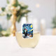 Starry Night Festive Christmas Black Cat Santa Hat Stemless Wine Glass