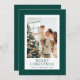 A minimalistic yet elegant green Merry Christmas card with a golden starry night on a green background. Easily personalise this holiday card with your photo and text.