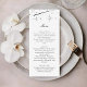 This starry night modern celestial wedding dinner menu card features a clean white background with delicate celestial accents. The minimalist layout feels elegant and well balanced. The clear typography makes the menu easy to read. This design is ideal for modern, celestial, and evening weddings.