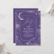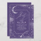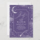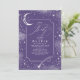 Charming and mystical purple baby shower invitation featuring crescent moon, shooting star and galaxies.
