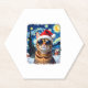 Starry Night Orange Tabby Cat Christmas Paper Coaster
