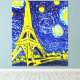 This beautiful design shows the city of Paris France and the Eiffel Tower in a style of Van Gogh's Starry Night painting.