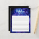 Watercolor starry night or galaxy painting wedding advice cards with hand lettering calligraphy style font. Black and blue painting of a night sky full of stars.