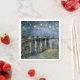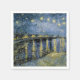 Thatched Cottages at Cordeville. Vincent Willem van Gogh. Night landscape in dark blue and yellow tones. There is a bridge across the river. In the foreground, a man and a woman are walking along the embankment. The stars are shining in the sky. Reproduction of famous works of art images in the public domain.