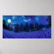 Starry night with full moon in forest poster