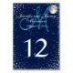 This starry night with moon wedding table number card looks both elegant and sophisticated. The background has just a touch of a glitter looks and looks like stars, helping to make this card even more special. Customise with your bride and groom names to make a special card that can also be used as a keepsake. When you order this card, make sure that you "make" each number individually then add them to your cart. Any discounts such as the bulk discount will then be applied. Card designed by Amelia Carrie. Have a wonderful day! (Note: This card contains no messy glitter and is a graphic reproduction print.) See more designs at GlitterInvitations.com or Zazzle.com/GlitterInvitations