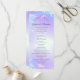Purple and blue starry sparkle wedding program card is two sided with ceremony details on front and wedding party participants on the back.