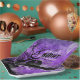 Are you planning a dark-themed wedding or a Halloween engagement? Look no further than our customisable Halloween + Gothic theme paper plates! Personalise this enchanting design featuring a haunting scene—a dead tree amidst a graveyard, with a giant spider web draped over a customisable gravestone, all under a foggy, dark purple sky with a semi-cloud covered full moon.