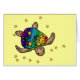 Front of card is decorated with a turtle that has rainbow shell and stars with yellow background
